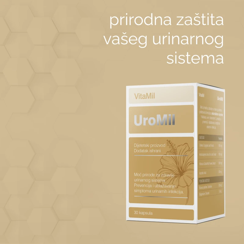 UroMil je prirodan dodatak ishrani namenjen osobama koje se bore sa ponavljanim urinarnim infekcijama, iritacijom mokraćnih puteva i osećajem nelagode pri mokrenju. Formulisan na osnovu savremenih naučnih saznanja i lekarskog iskustva, UroMil predstavlja efikasnu biljnu podršku kod akutnih i hroničnih urinarnih tegoba.